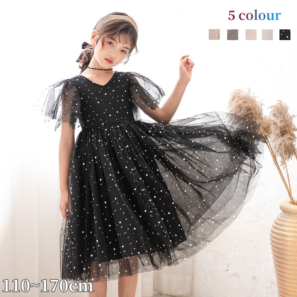 キッズ ワンピース 夏 黒 子供服 女の子 ワンピース 可愛い 大きいサイズ 制服 発表会 面接 卒業式 入学式 小学生 中学生 高校生 通学 140 150 160