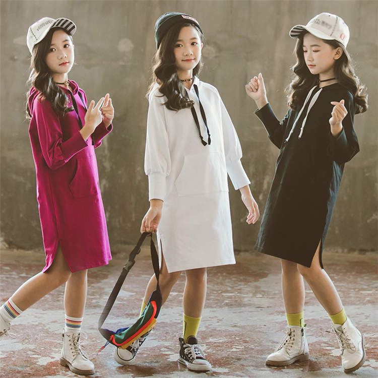 フーディー パーカー ワンピース 女の子 キッズ 子供服 子供用 フード付き 膝丈 ミモレ丈 カジュアル 秋 春 体型カバー
