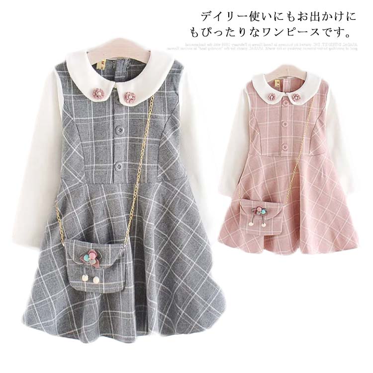 ドレス ワンピース チェック柄 子供服 女の子 お嬢様 長袖 通園 通学 誕生日 フォーマル 卒業式 入園式 可愛い