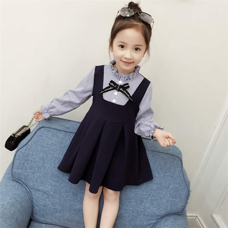 キッズドレス ワンピース 子供服 子供 ストライプ Aライン リボン 長袖 女の子 フレア かわいい 子供ワンピース 子供ドレス