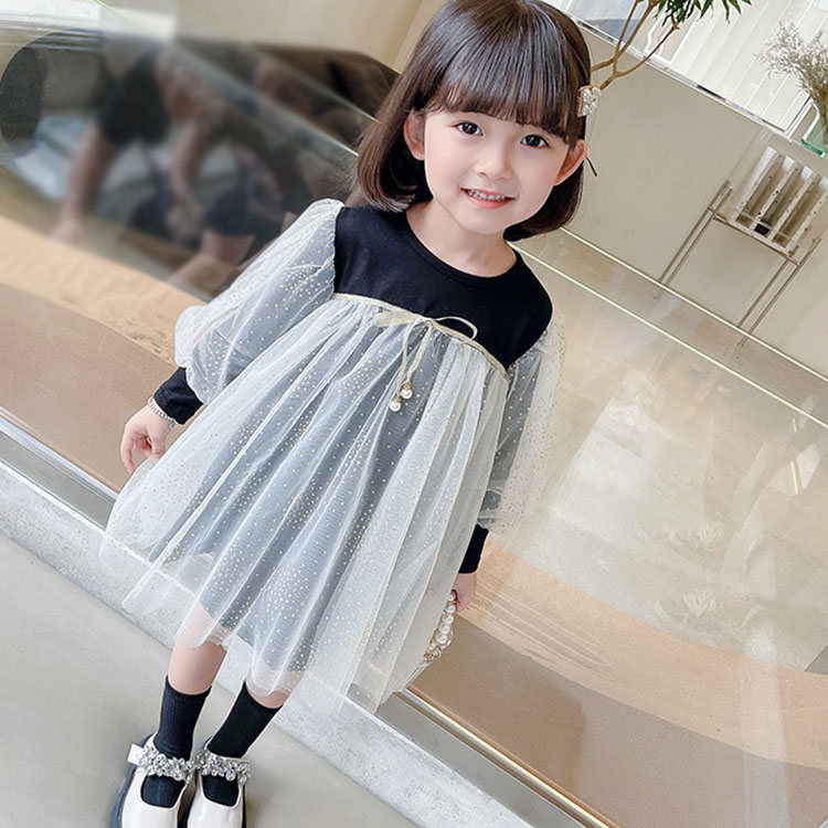 ワンピース キッズ 春秋 長袖 子供用 Aライン 女の子 ドレス プレゼント チュールスカート ファッション きれいめ お嬢様風 結婚式 入学式 おしゃれ 女児 バイカラー ブラック 可愛い お出かけ