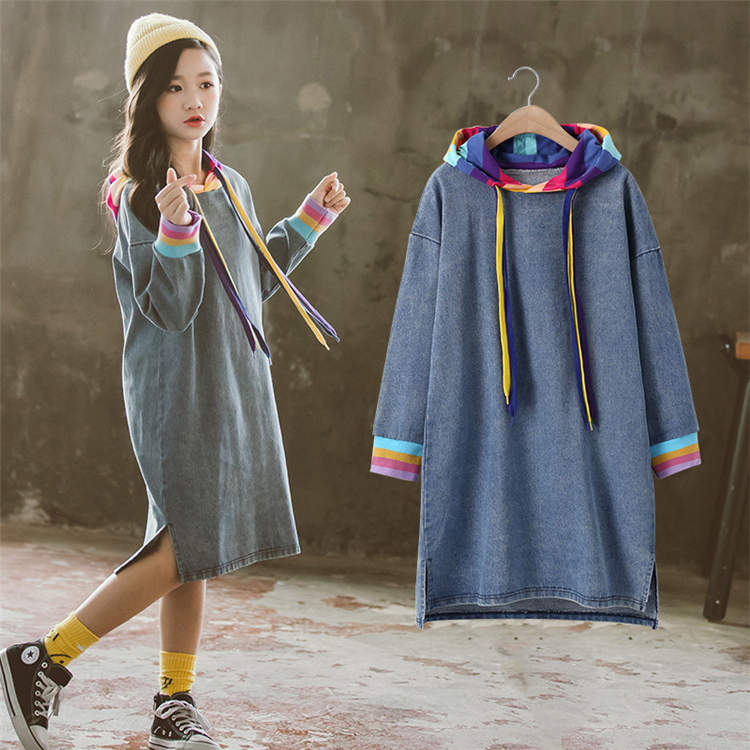 デニムワンピース キッズ 子供服 ワンピース パーカー フーディー デニム 子供用 フード付き ジュニア スリット 二次会