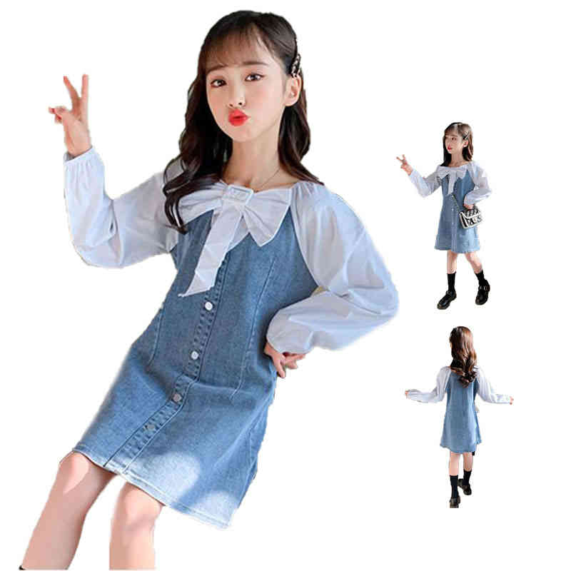 デニム デニムワンピース シンプル 春秋 長袖 ロングワンピース おしゃれワンピース 無地 女の子キッズ ベビー マタニティ キッズファッション ワンピース