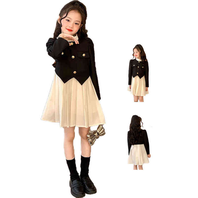 おしゃれワンピース ロングワンピース 長袖 丸襟 切り替え 女の子 子供ワンピースキッズ ベビー マタニティ キッズファッション ワンピース