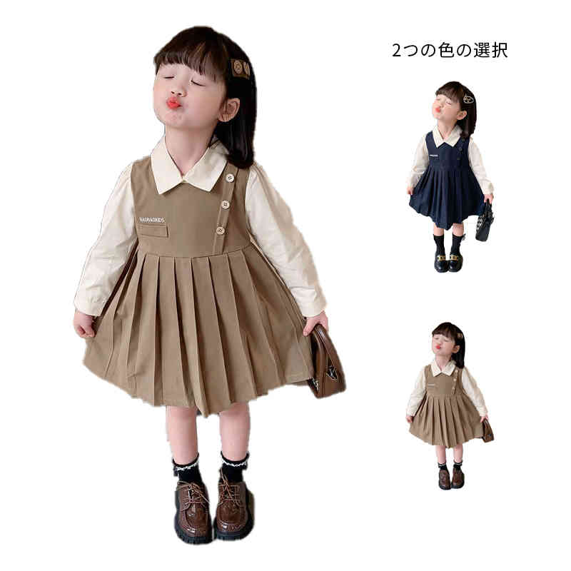 ワンピース 折襟ワンピース インナーワンピース ロングワンピース ロング丈 シャツキッズ ベビー マタニティ キッズファッション ワンピース