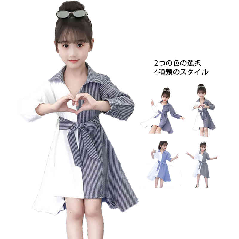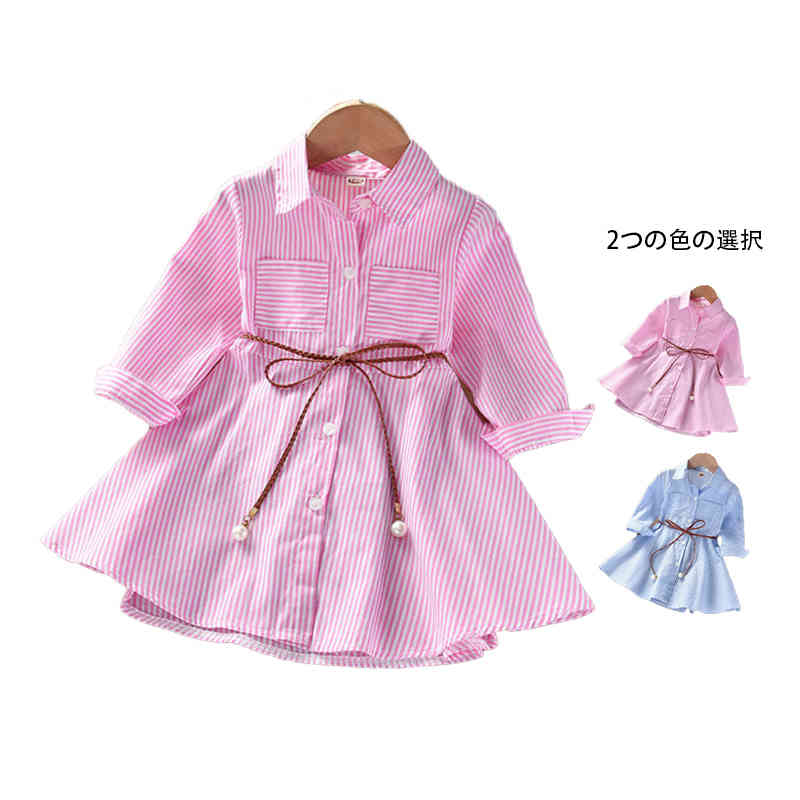 子供ワンピース シャツワンピース 長袖 折襟ワンピース シャツワンピース 女の子 無地 おしゃれワンピース