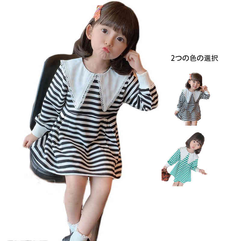 ボーダー柄 セーラー襟 ワンピース 長袖 女の子 ゆったり おしゃれワンピース フォーマルワンピース 子供服
