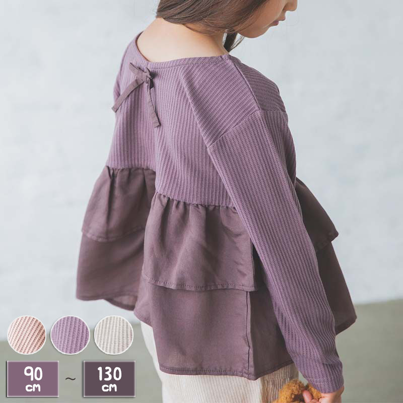トップス ブラウス キッズ 女の子 子供服 子ども プルオーバー トップス 春夏 ワッフル生地 ビスチェ風 服 こども服 子供 無地 長袖 春 秋 90 100 110 120 130