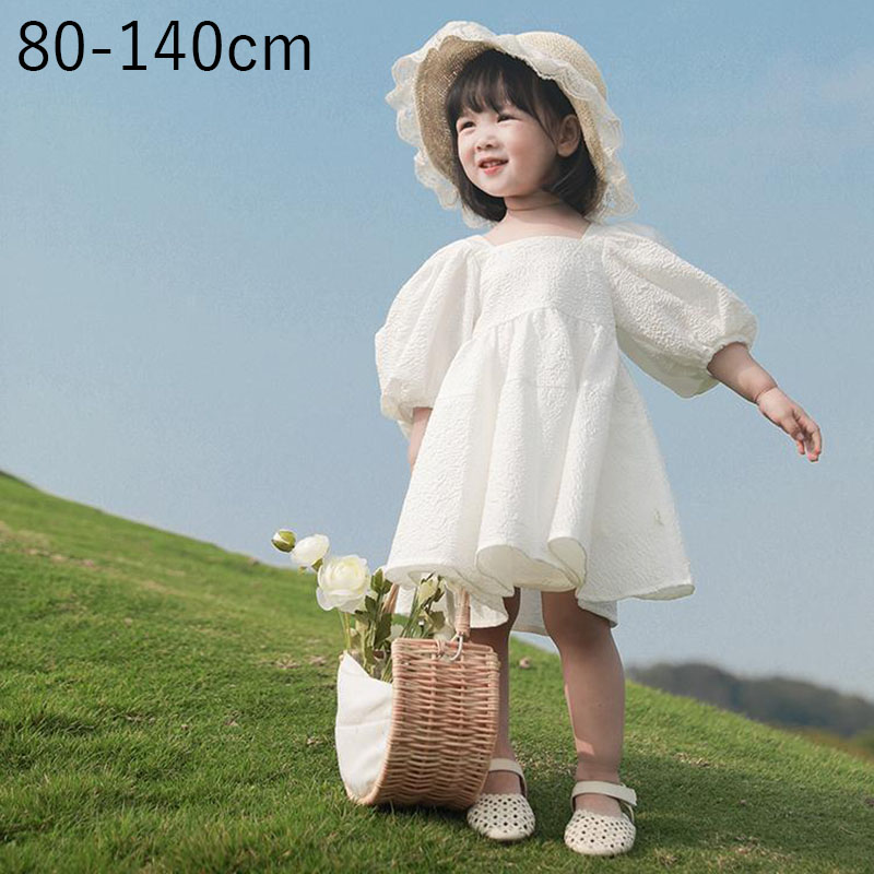 女の子 サマードレス ワンピース かわいい 子供服 キッズ ガールズ おしゃれ ドレス 2023年 夏 新しい プリーツ 無地 コットン リネン プリンセス スカート 薄い サマー