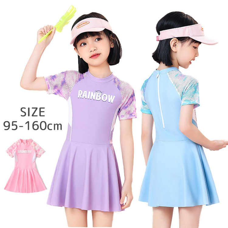 水着 女の子 ワンピース スイムウェア キッズ 子供 半袖 女児 子ども かわいい おしゃれ 海 川 プール ジュニア 小学生 中学生 90 100 110 120 130 140 150 160