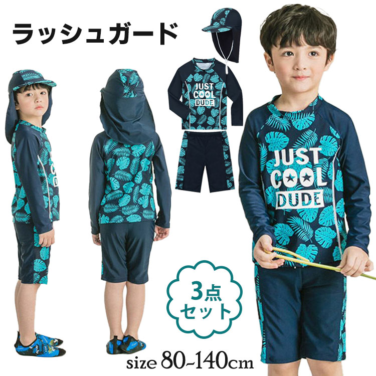 キッズ 水着 男の子 長袖 男の子水着 3点セット ラッシュガード 帽子付き 紫外線対策 日焼け防止 ベビー水着 ジュニア スイムウエア スイムスーツ 子ども 幼稚園 小学生 オシャレ 水遊び 海 プ