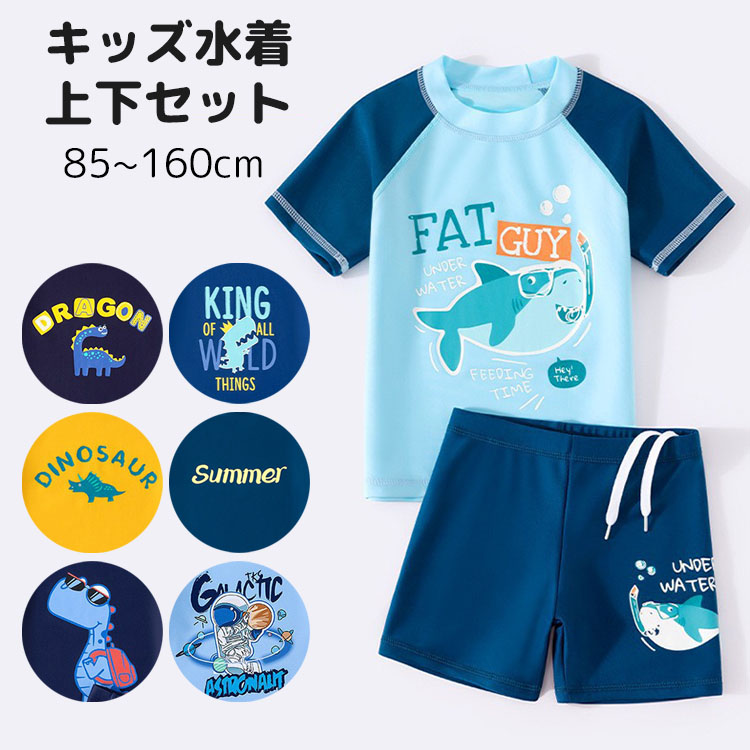 子供に人気のある柄 恐竜 ダイナソー サメ 着脱しやすい2点セットキッズ ベビー マタニティ キッズファッション 水着