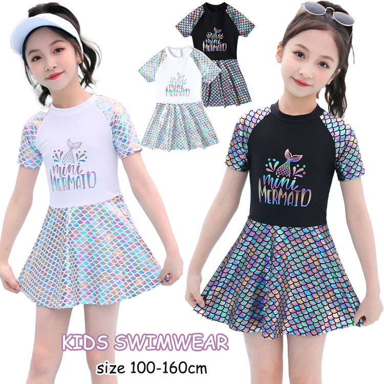 キッズ 水着 女の子 ワンピース 可愛い 人魚姫水着 2点セット ワンピース+ショートパンツ ベビー水着 半袖 パッドなし 人魚 人魚姫 ガールズ 旅行 水遊び プール 夏 海水浴 紫外線対策 スイム