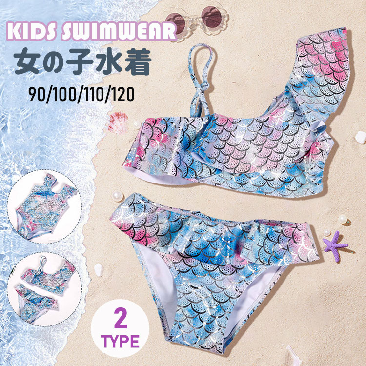 2Type 女の子 水着 可愛い 人魚姫水着 ベビー水着 ノースリ水着 ワンピース水着 セパレート型 上下セット プール 夏 海水浴 水遊び プール おしゃれ スイミング スイムウェア 幼稚園 小学生