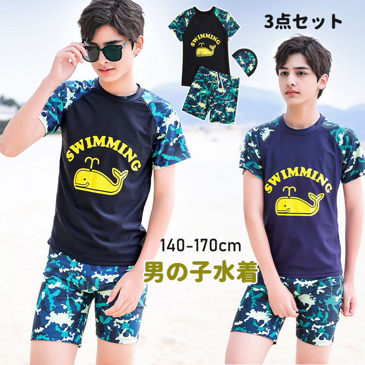 ジュニア 男の子 水着 3点セット セパレート キャップ付き 学生用キッズ ベビー マタニティ キッズファッション 水着