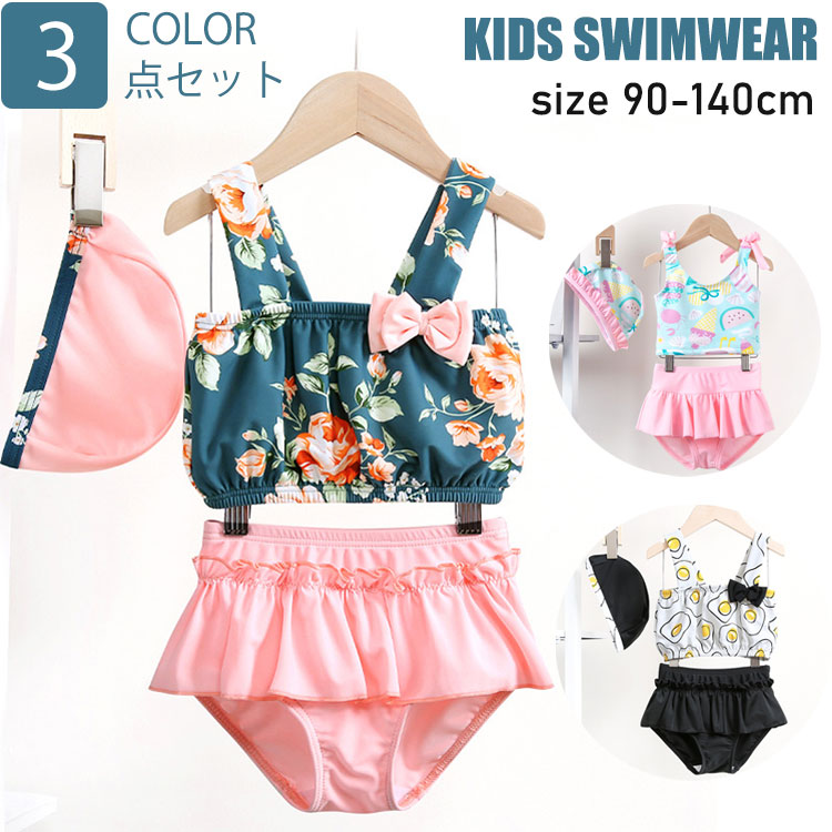 ビキニ水着3点セット 女の子 キッズ トップス パンツ キャップキッズ ベビー マタニティ キッズファッション 水着