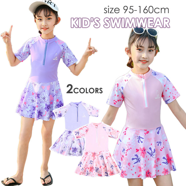 キッズ水着 ワンピース 女の子 可愛い ショートパンツ付き ベビー水着 半袖 ジュニア ガールズ 旅行 水遊び プール 夏 海水浴 紫外線対策 スイムウェア 幼稚園 小学生 中学生 95 100 11