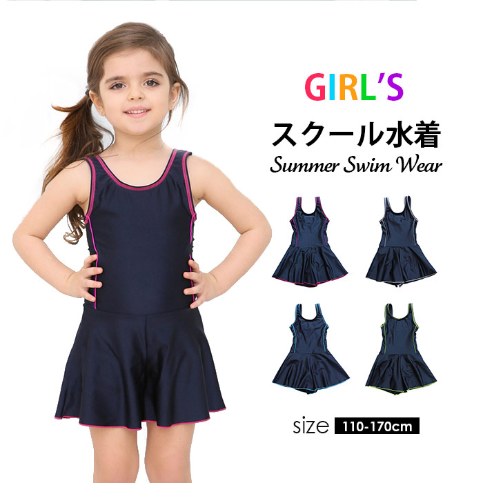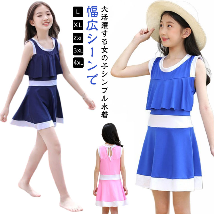 体型カバー スクール水着 女の子 シンプル 水遊び 露出控え L~3XLキッズ ベビー マタニティ キッズファッション 水着