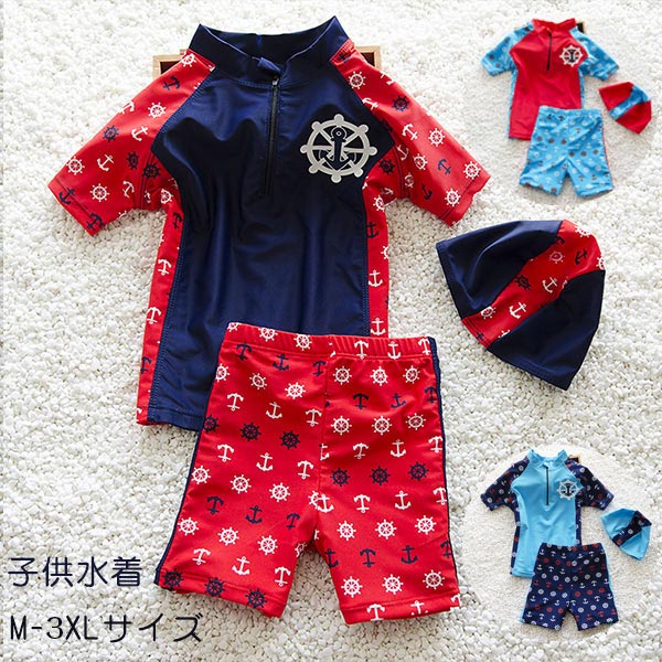 キッズ用水着 セパレート 男子 お買い得 水着 温泉 水着 吸水速乾 みずぎ 新作 水着 ビーチ 子供水着3点セット 水着帽付3点セット キッズ ラッシュガード