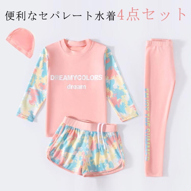 L~4XL 4点セット キッズ水着 女の子 紫外線カット ストレッチキッズ ベビー マタニティ キッズファッション 水着