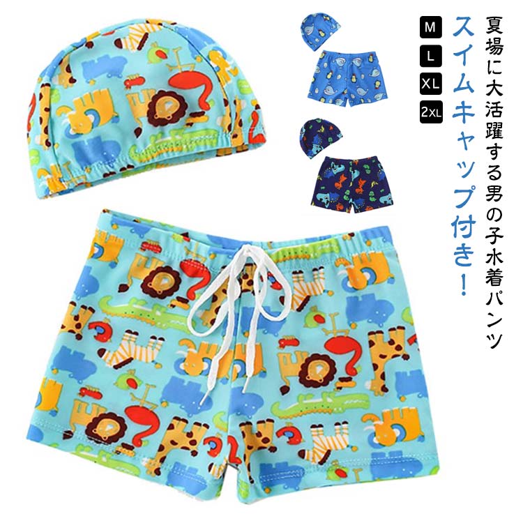 M~4XL 男の子 水着パンツ ストレッチ スイムキャップ付きキッズ ベビー マタニティ キッズファッション 水着