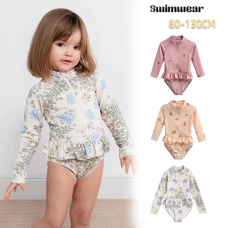 水着 女児 キャップ付き 長袖 女の子 子ども用 水着 キッズ かわいい 花柄 フリル ベビー水着 赤ちゃん スイムウエア 小学生 幼稚園 オシャレ 紫外線対策 カット 水遊び 海 ビーチ 記念写