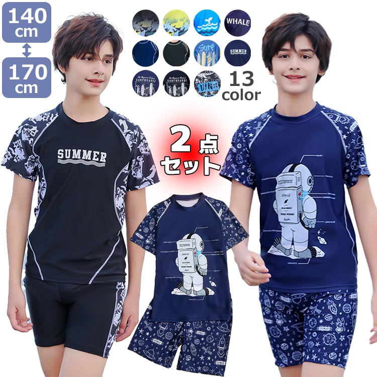 50+ ラッシュガード 半袖&ショートパンツ 2点セット 動物柄 魚柄 宇宙飛行士キッズ ベビー マタニティ キッズファッション 水着