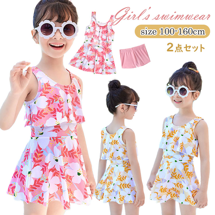 女の子 水着 セパレート 2点セット ジュニア 100 110 120 130 140 150 160 170 トップス スカート パンツ付き 幼稚園 小学生 中学生 高校生 パッド付き キッズ かわ