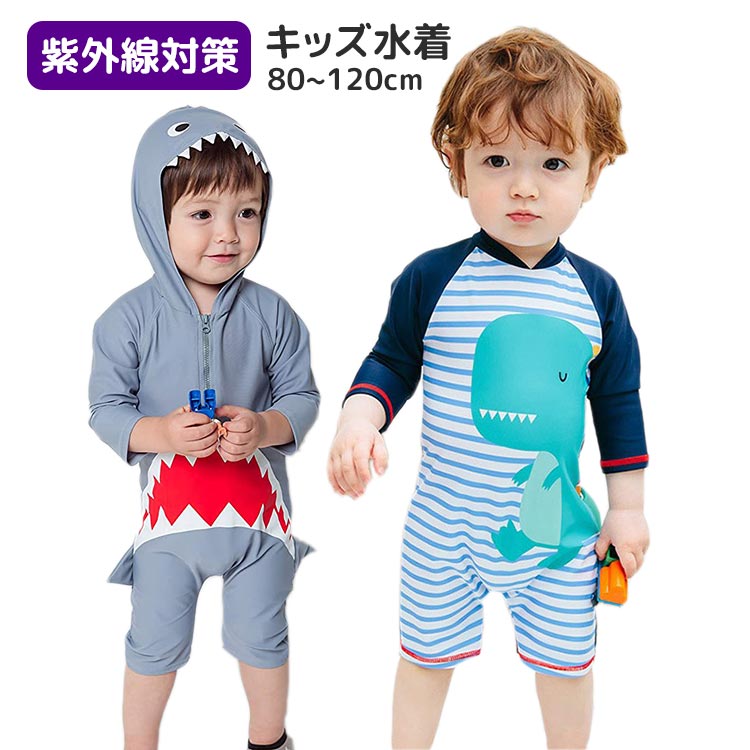 サメ柄 恐竜柄 キッズ水着 ラッシュガード 男の子 女の子 男児 女児 ベビー キッズ 子供用水着 赤ちゃん ジッパー ファスナー 長袖 紫外線対策 UVカット 可愛い お洒落 オシャレ 水遊び 海