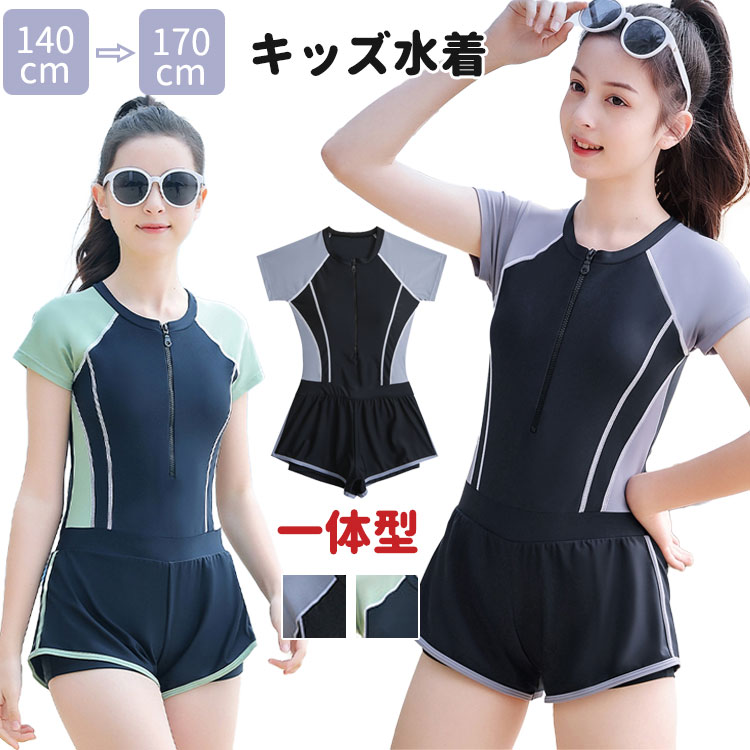 ガールズ ワンピース水着 140 150 160 165 170 女の子 キッズ ショートパンツ付き 学生 授業用