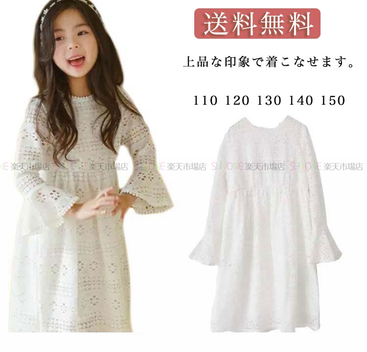 レースワンピース 子供ドレス 韓国子供服 春秋 長袖 女の子 総レースドレス ロング丈 ワンピース コットン リゾート おしゃれ 子ども服 キッズ 女児 シンプル ビーチ 入学式 パーティ