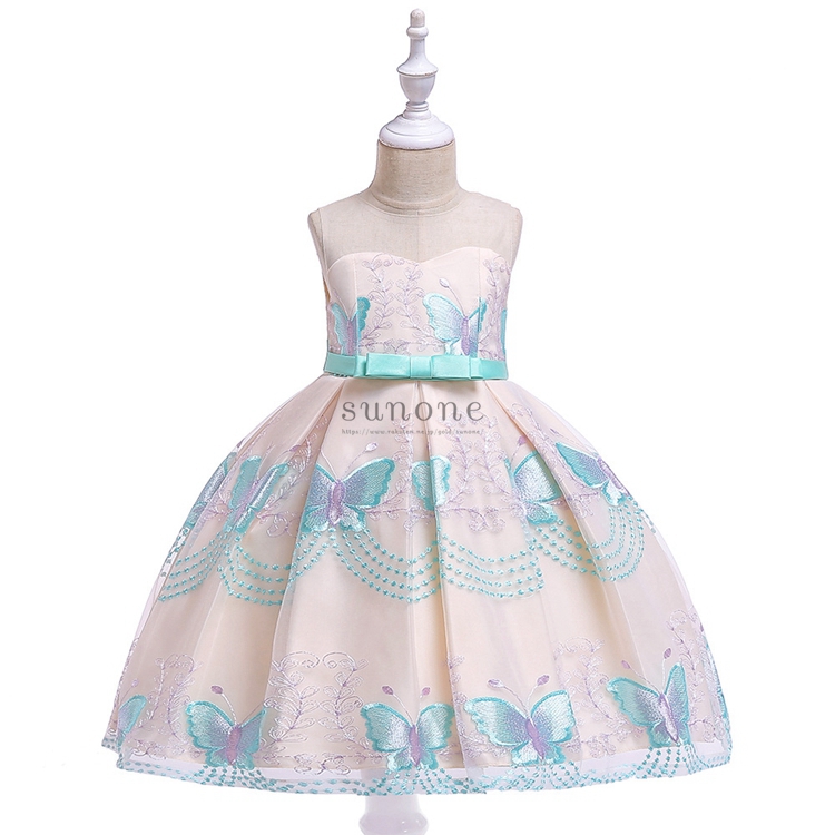 子供ワンピース キッズドレス 女の子 刺繍ドレス ピアノ発表会 フォーマルドレス パーティードレス 子供服 結婚式 ノースリーブ
