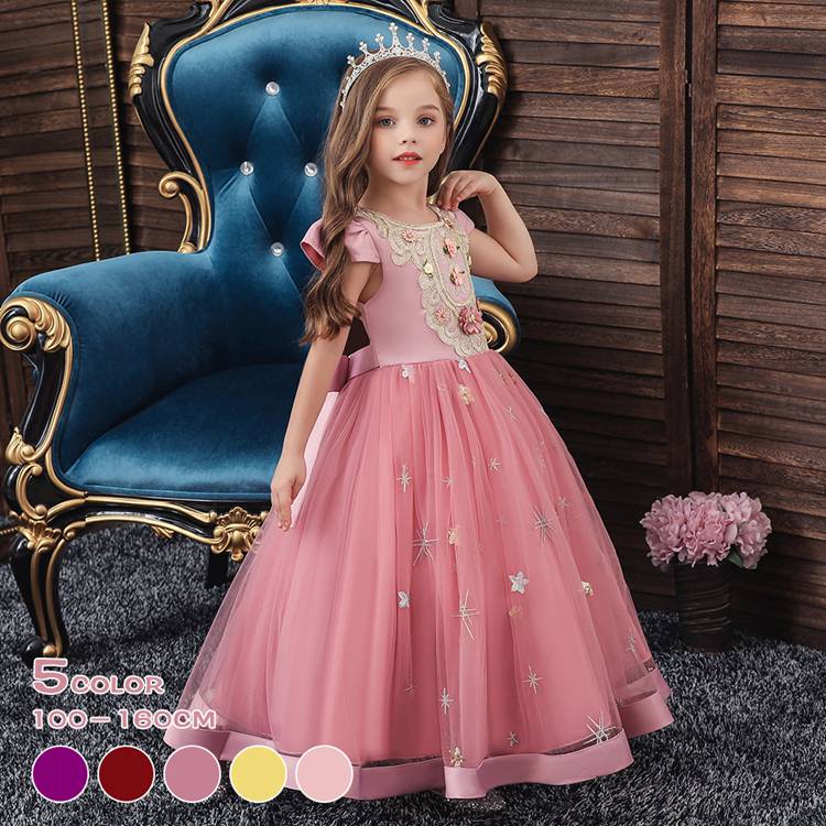ガールズドレス 子ども お姫様ドレス ロングドレス 子供ドレス 女の子ドレス カラードレス レースドレス フォーマルドレス 大きいサイズ 七五三 演出舞台 結婚式 卒業園 入園式 ピア