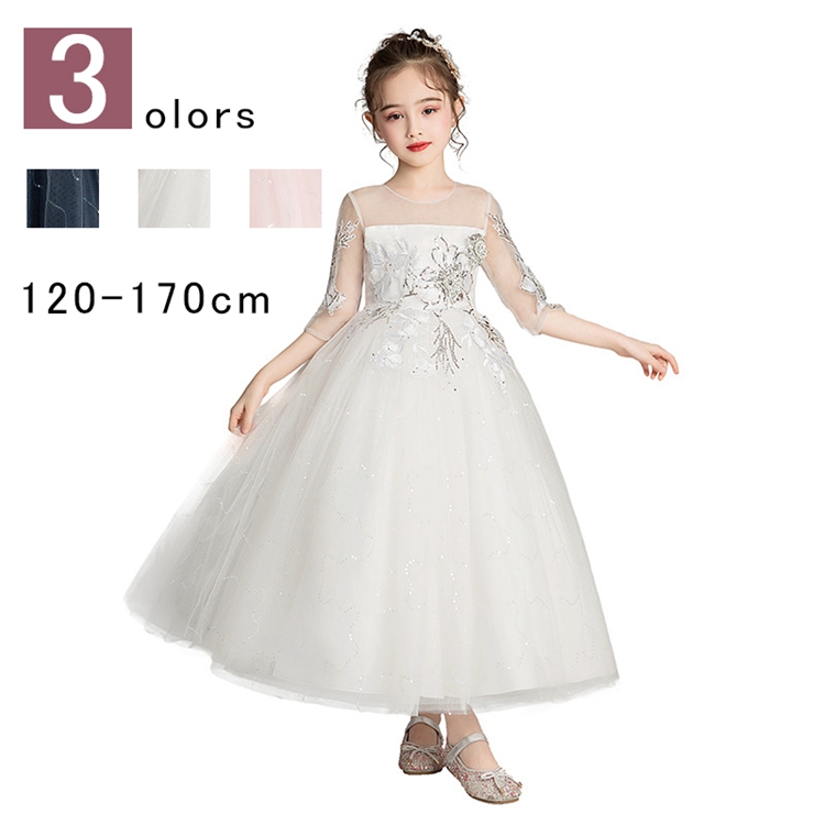 子供ドレス ロングドレス ピアノ 女の子 パーティー 刺繍 発表会 結婚式 フォーマル ジュニア フラワーガール ガールズ 誕生日 入園式 七五三 卒業式