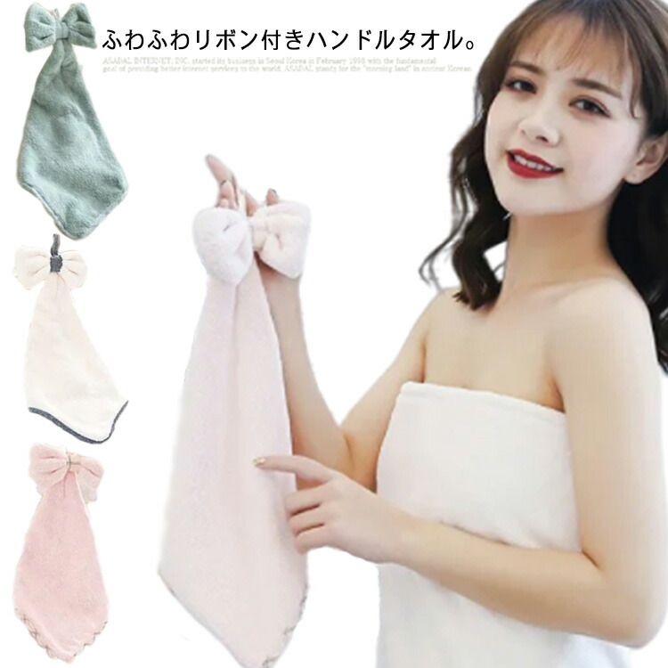 ハンドタオル 引っ掛け かわいい 日用雑貨 タオル 手拭きタオル 台所 洗面所 ストライプ柄 リボン