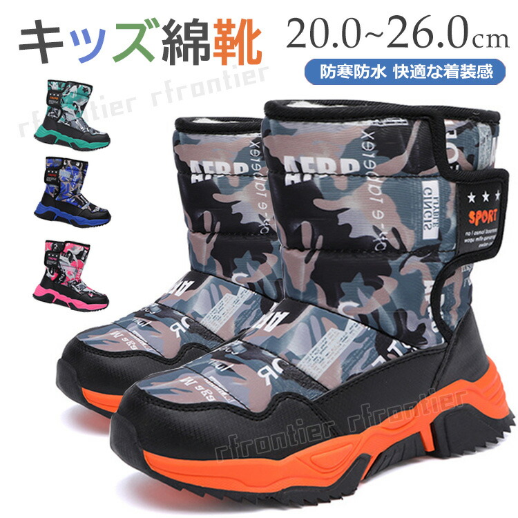 キッズシューズ スノーブーツ 迷彩柄 子供 冬 シューズ 防寒 防滑 裏起毛 ブーツ ハイキング ベルクロ