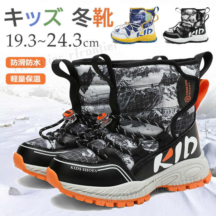 キッズシューズ 冬靴 ひもタイプ カジュアル 男の子 女の子 アウトドア 歩きやすい 子供 冬靴 防寒防水 スノーブーツ 19.4cm~24.7cm