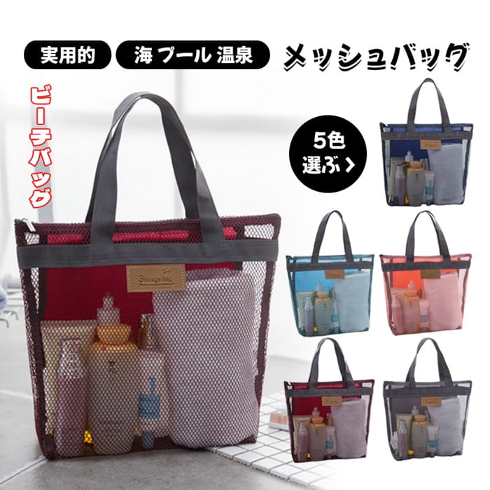 ビーチバッグ メッシュバッグ トートバッグ スパバッグ プール 温泉 銭湯 お風呂 シャワー 濡れてもOK スポーツジム用 旅行 海 海水浴 スイミング 水泳 ヨガ ビニールバッグ 温泉バッグ 手提げ