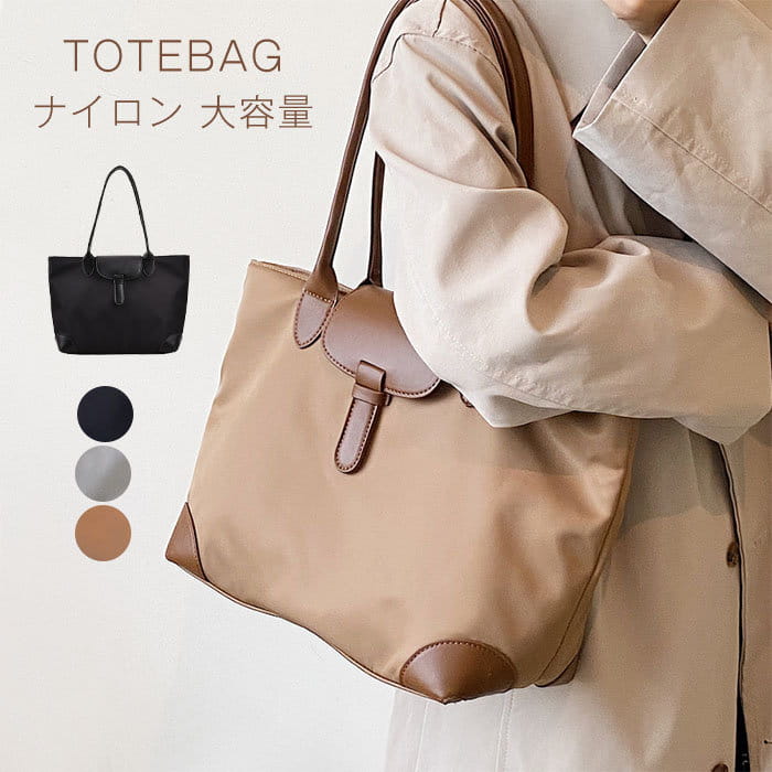 トートバッグ レディース 大きめ ナイロン 防水 2way 軽量 a4 ファスナー付き 手持ち 肩掛け 通勤 通学 通勤バッグ 黒 ブラック 大容量 おしゃれ 大人 ファスナー かばん ショルダーバッ