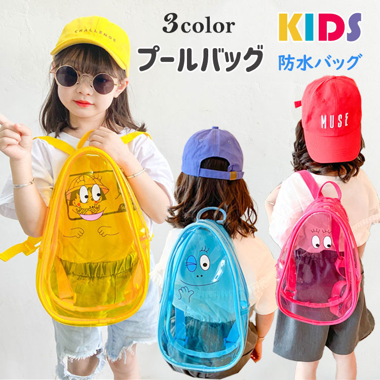 クリアベビーリュック6色透明赤ちゃんキッズ女の子男の子サマーバッグ防水プール海水泳バッグミニ小さい小さめビニールビニールバッグスケルトン黒ブラックピンク青ブルーイエロー緑グリーン白ホワイト韓国