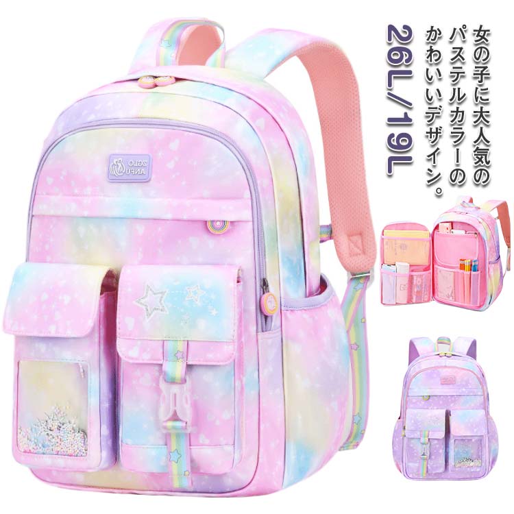 リュックサック 女の子 子供 キッズ リュック チェストストラップ付小学生大容量 A4教科書 20L 35L バックパック 通学 防水