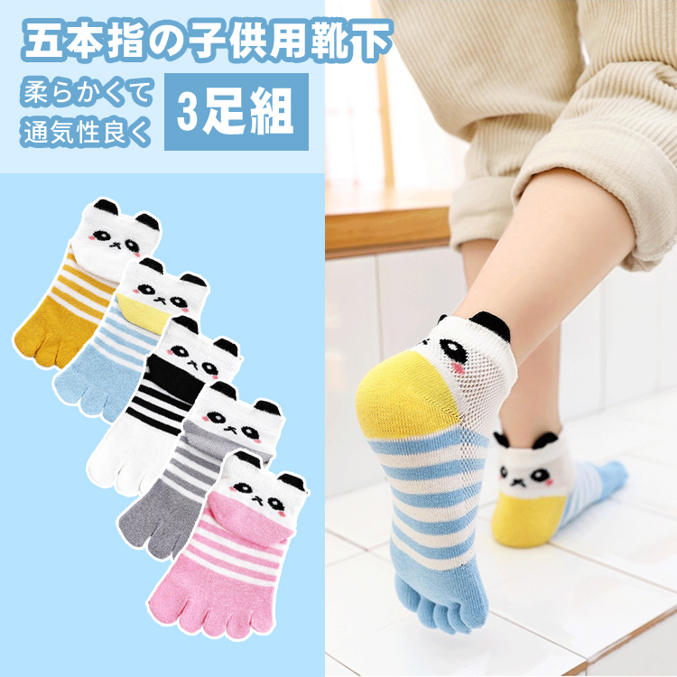 3足組 子供 靴下 五本指 キッズ くつした キッズソックス 子ども かわいい コットン 柔らかい ユニセックス 蒸れない グッズ 卒園 伸縮性 春夏秋冬 ベーシック お洒落 プチギフト