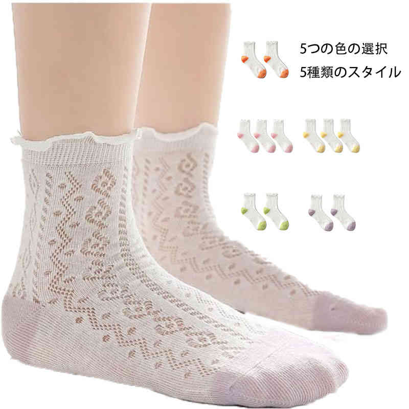 4足組 靴下 子供 ソックス フットカバー メッシュ 通気性 脱げない 女の子 男の子 可愛い アウトドア 靴下 フリル キッズ 吸汗速乾 通気抜群 薄手 無地 柔らか 通学 通園 -91-