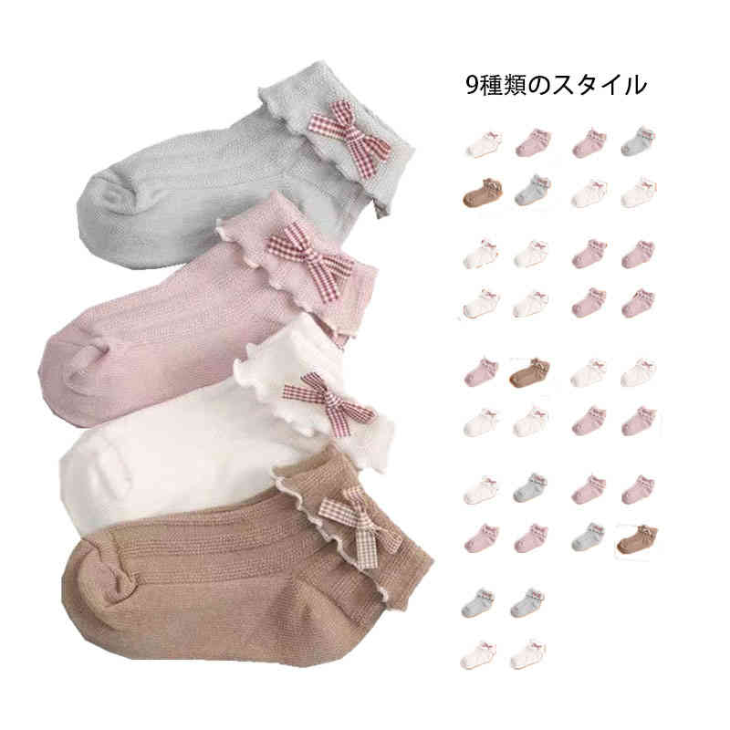 4足セット 女の子 4足セット おしゃれソックス かわいい フリル靴下 フリルソックス リボン付き ベビ-ソックス ジュニア
