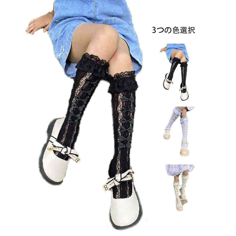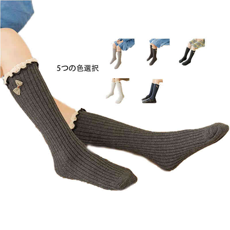 おしゃれソックス ソックス ハイソックス 子供用 レース靴下 レース付き 子供靴下 女の子 リボン付き かわいい クルーソックス