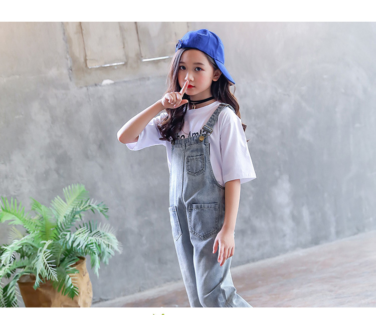 デニムサロペットパンツ オーバーオール おしゃれ 可愛い 女の子 ガールズ 無地 子供 カジュアル 重ね着 レイヤード キッズ ジュニア ロングパンツ