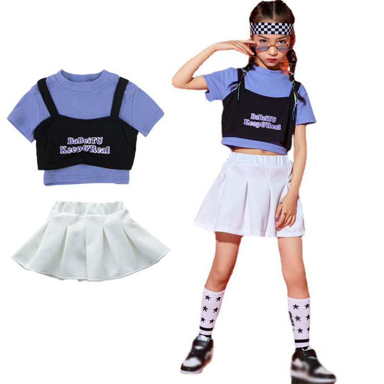 二点セット スカートセット ヒップポップ シャツ フェイク 子供 女の子 へそ出し ダンスウェア ジュニア スポーツ チア ジャズ 普段着 応援団 運動会 チアガール カジュアル シンプル 110~