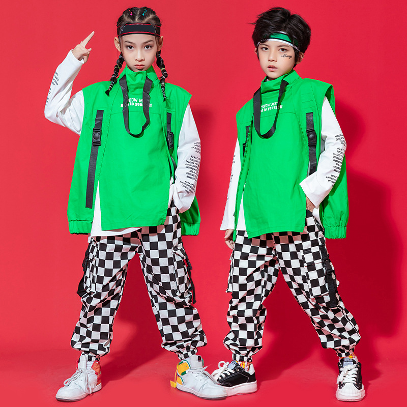 キッズ ダンス ダンス衣装 男女兼用 ベストガールズ ヒップホップ かっこいい キッズダンス ジュニア 子供服 舞台服 演出服 ステージ衣装 練習着 体操服 応援団 韓国風 ストリート 緑