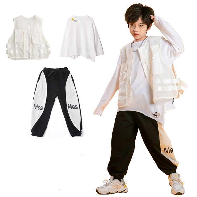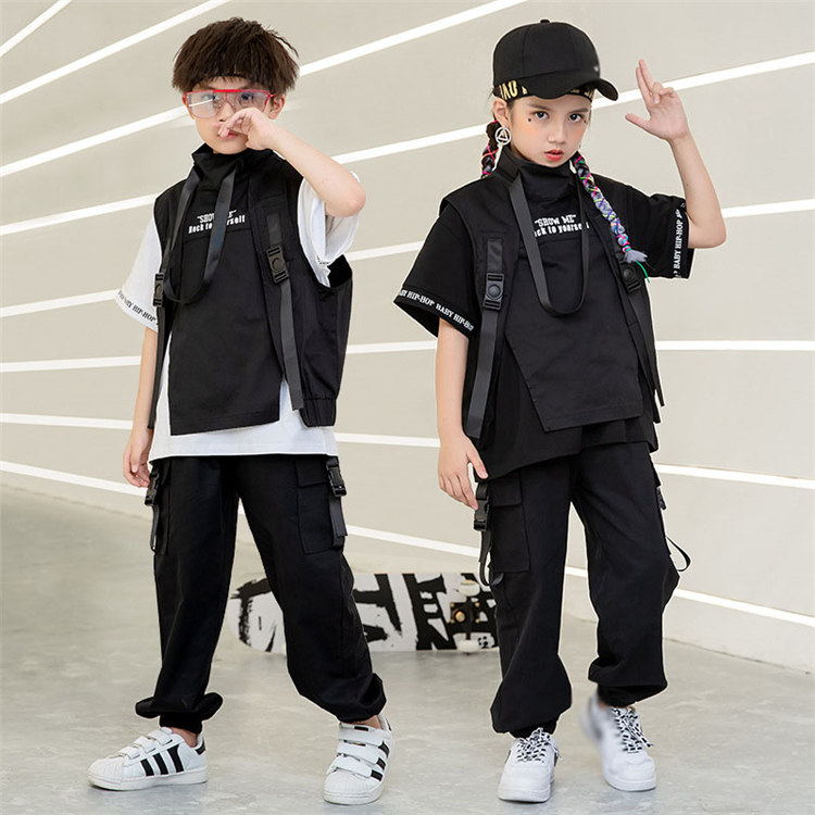 二点セット ベスト 長パンツ 男の子 女の子 キッズダンス衣装 ヒップホップ ダンス 韓国風 普段着 ダンスウェア ジュニア 応援団 ジャズ かっこいい 派手 ゆったり ブラック 110~170cm