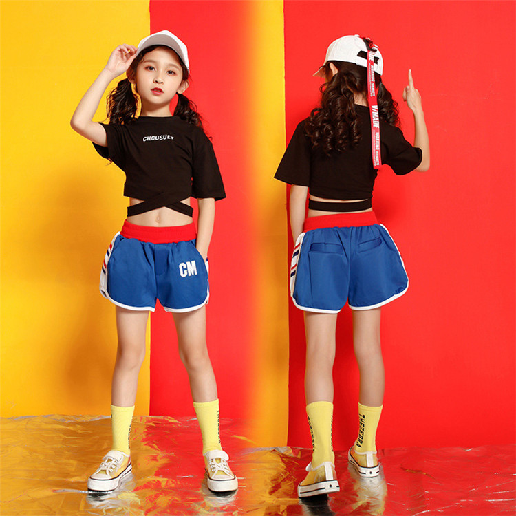 Tシャツ パンツ ヒップポップ ブルー ブラック 子供 女の子 ダンスウェア ジュニア スポーツ ジャズ カジュアル シンプル 普段着 応援団 運動会 110~170CM WUDAO-159